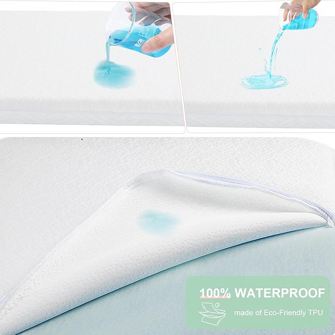 • 【Waterproof】Pack n Play Mattress cover is made of high quality TPU waterproof membrane that repels all other liquids, including fluids, perspiration, bed wetting, and stains. The waterproof feature protects the mattress.