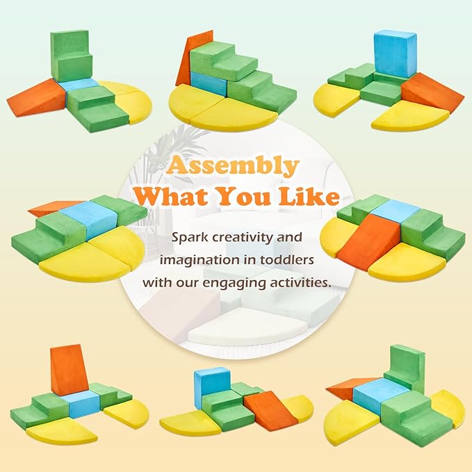 • 【High-quality& Comfortable Fabric】: Crafted from soft, anti-static, non-pilling, non-slip, and durable fabric, the climbing blocks feature superior quality fabric. This soft texture offers a nice touch sense, delivering a blend of practicality and aesthetic appeal to our kids' fun toys. Our continual efforts are dedicated to providing products that meet both functional and visual demands, ensuring an enjoyable and safe play experience for children.