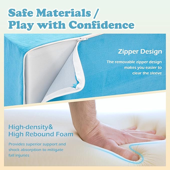 • 【Safe&Fun to Play】: Our climbing blocks for toddlers 1-3 are made from non-toxic and odorless fabric. Designed with hidden zippers to prevent scratching on children's soft skin, our blocks provide a reassuring and safe environment for play. With a focus on safety, our blocks are built without hard structures or sharp edges to protect children from bumps and injuries.Your child can safely play, toddle, and roll on this climbing toy that offers a soft and supportive surface, providing peace of mind for parents.