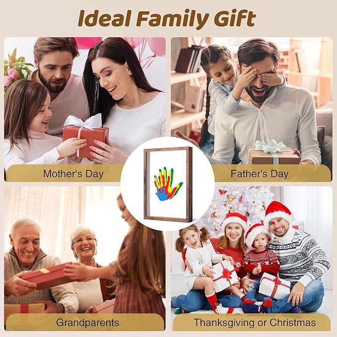 Family Handprint Kit, Hand Prints Keepsake Frame, DIY Craft Gift for New Parents & Mom & Baby, Grandparents, Mother's Day, Father's Day, Adoption Day, Anniversary, 6 Non -Toxic Paints (Brown)