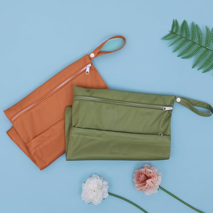 ALVABABY 2pcs Cloth Diaper Wet Dry Bags Waterproof Reusable with Two Zippered Pockets Travel Beach Pool Daycare Soiled Baby Items Yoga Gym Bag for Swimsuits or Wet Clothes 2LM04