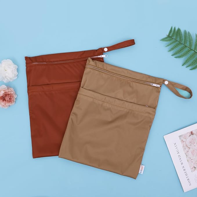 ALVABABY 2pcs Cloth Diaper Wet Dry Bags Waterproof Reusable with Two Zippered Pockets Travel Beach Pool Daycare Soiled Baby Items Yoga Gym Bag for Swimsuits or Wet Clothes 2LM06