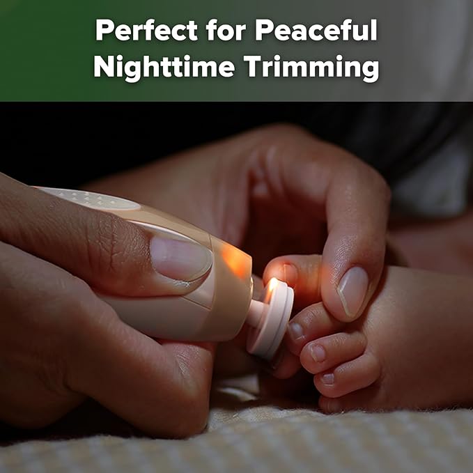 haakaa Baby Nail Care Electric Baby Nail File Kit with LED Light, Baby Nail Clippers for Newborn/Infants/Adults Toenails and Fingernails, 6 Replacement Heads & Storage Case, Acorn