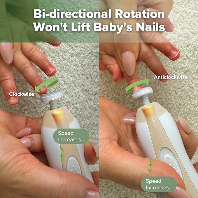 • SAFE & GENTLE: Our electric nail trimmer, equipped with a pressure-activated safety system, is gentle on your baby's fingers, preventing injuries and ensuring parents' peace of mind.