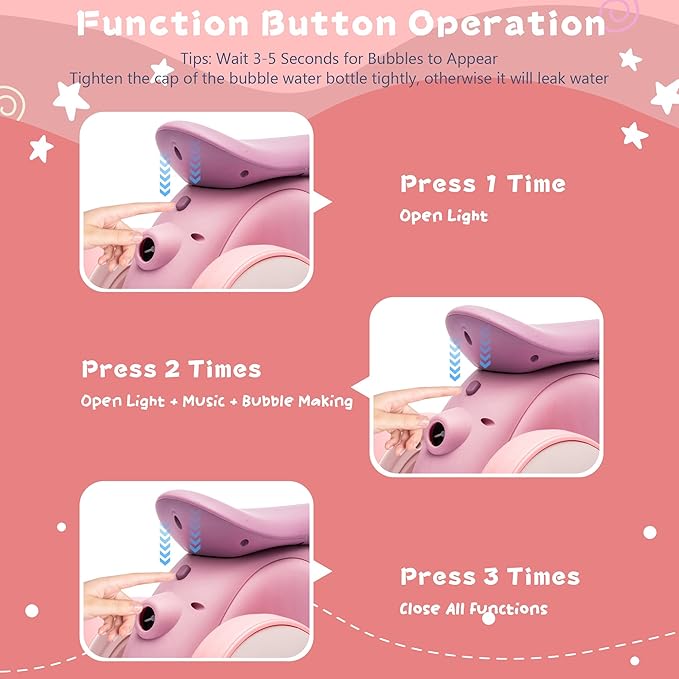 • Ensuring Safety First: Our electric baby balance bike with bubble maker ride on toy not only promotes fitness and balance in young children but also encourages babies to utilize their legs, thereby strengthening leg muscles and establishing healthy exercise habits from an early age. It fosters balance, coordination, self-confidence, and independence. Featuring a lower floor-to-seat height, even the smallest tots can enjoy a smooth and secure ride-on experience.