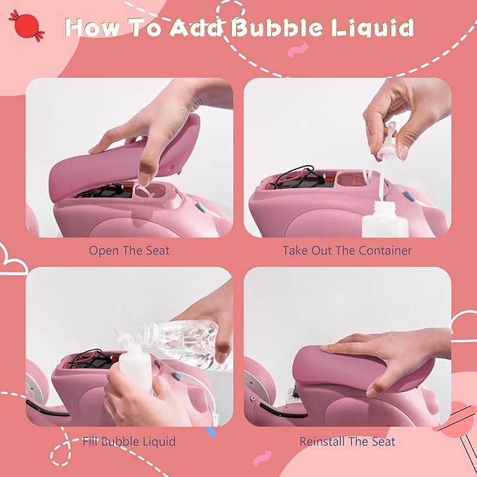• Comfortable Children Balance Motorbike with Remote & Bubble Machine: Our ride-on toy features a non-slip soft handlebar designed for small hands, while the wider and thicker seat offers excellent shock absorption. With durable EVA wider tires that are noiseless and gentle on wooden floors, and 4 wheels for a smooth ride on various surfaces, it's perfect for both indoor and outdoor activities.