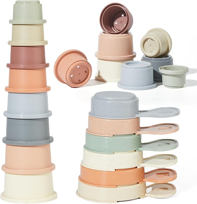 • 14PCS Bath Toys: Baby bath toys include 8pcs bath cups and 6pcs bath spoons, the size of the stacking cups are designed specifically for babies' small hands