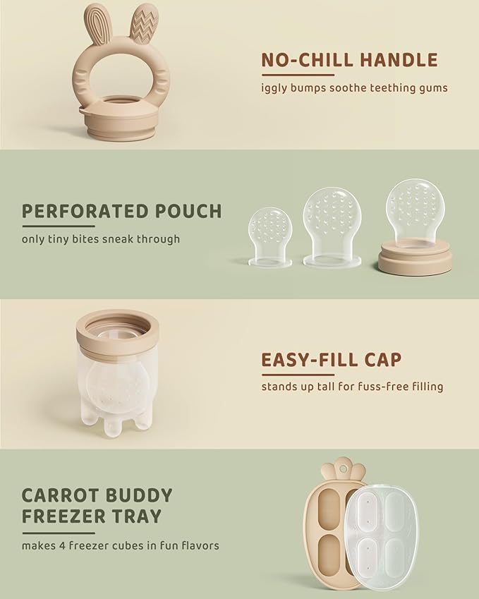 • 【100% Food Grade Silicone】The complete freeze-n-feed teether combo is made of BPA free silicone with no small parts to provide a pleasant feeding experience. Our feeder set exceeds all government safety regulations and standards for parents' peace of mind.