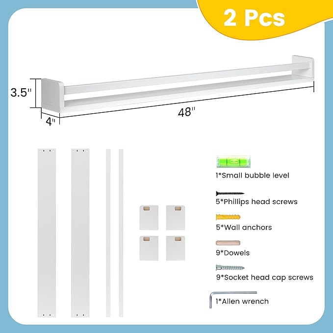 • Durable & High-Quality: Made of solid pine wood, these floating shelves are built to last. They'll provide a stylish and practical storage solution for years to come, making them an excellent addition to nursery decor and any room throughout your home