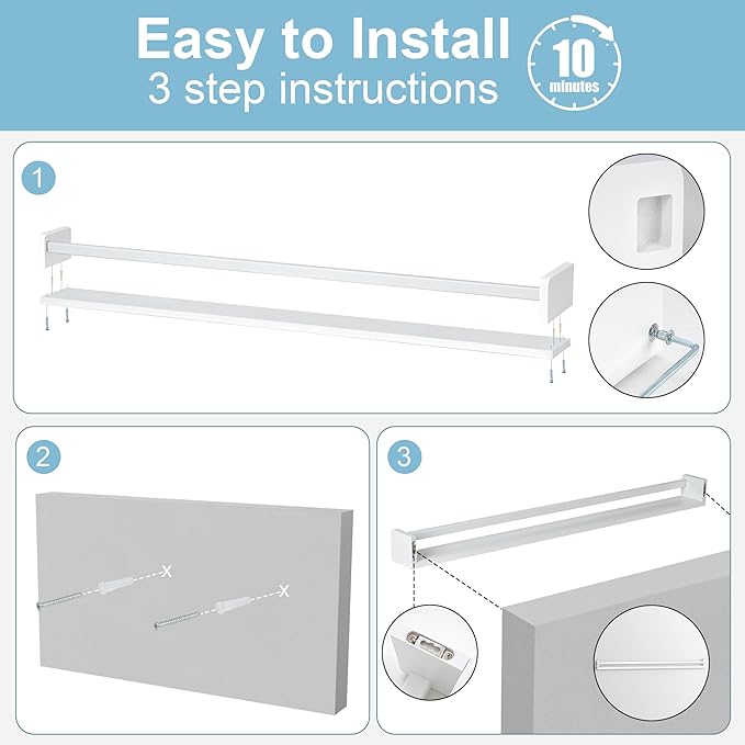 • Easy to Install: With the included installation manual, you can quickly and easily install these shelves in minutes. Once installed firmly on the wall, they can hold up to 20 lbs of weight, making them a reliable storage solution for your home