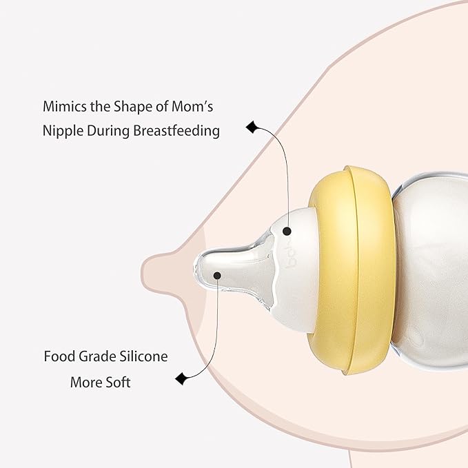 • YOHKOH Natural Baby Bottles are made of high quality borosilicate glass, pure and clear without impurities. Paired with a liquid silicone nipple, it can help empty the bottle of air, and the baby can comfortably complete the feeding.