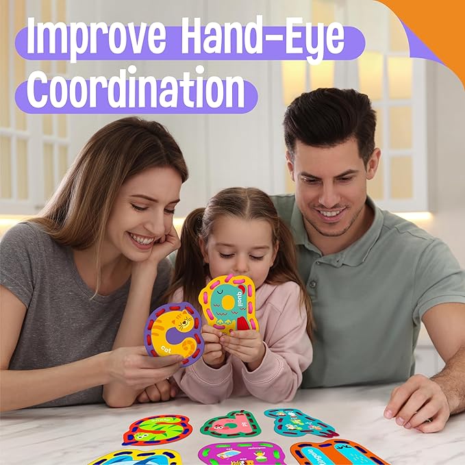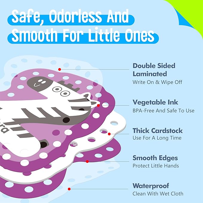 • High Quality and Durable: Our lacing cards are made of sturdy cardstock with premium material that ensures long service time and durability. All cards are printed in reliable vegetable ink, which will not release harmful substances, and the smooth edges can protect little hands, making it safe to use. The laces are made of high quality polyester, which is not easy to break and is long-lasting.