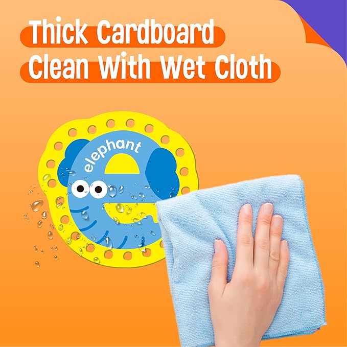 • Double-sided Printing: 26 alphabet lacing cards are double-sided printed. The front side is printed with lowercase letters with cute animals, including animals’ names, such as letter c designed in cat image with the word “cat”. While the back side is some basic words with related illustrations, allowing children to master alphabet and words and images at the same time. Adorable designs with vibrant color make learning fun and engaging.