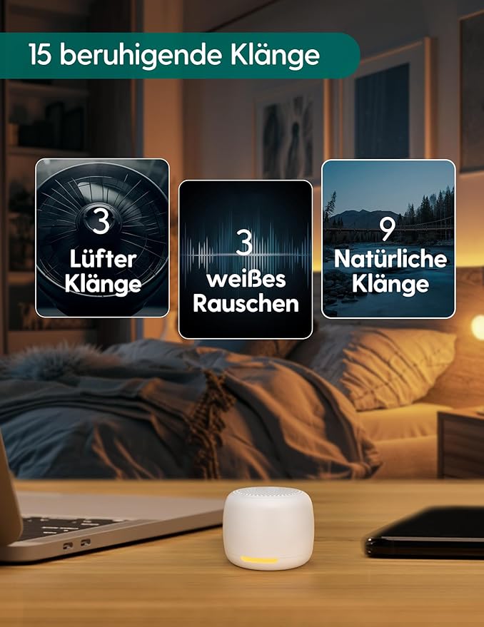 • Sleep Better: The travel sound machine delivers non-looping, soothing, reliable sound quality, create a nature atmosphere, help sleep better & longer, perfect for anyone with sleep challenges