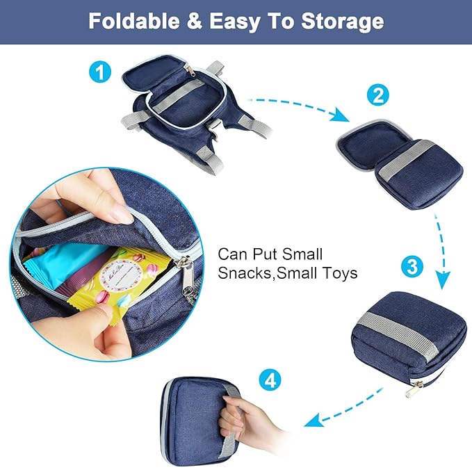 • Foldable & Reflective: There is a small pocket on the back of the harness, you can fold it when you don’t need it, which is very convenient to carry. The wrist link and tether are reflective, making it secure for children to go out at night