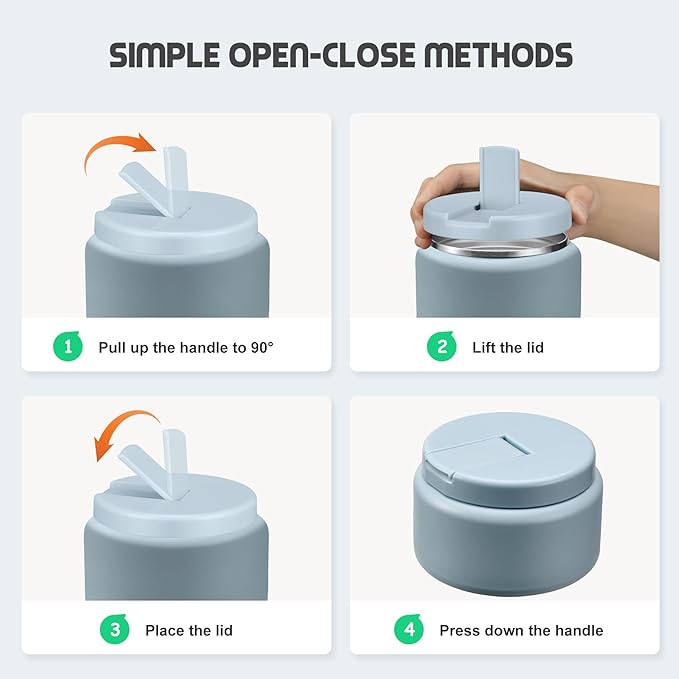 • Use Tips and Notes:In order to keep food hot or cold for a longer time, we recommend preheating/precooling with hot water/ice water for 5~10 minutes before putting food or soup into the food jar, and then put the food in. Note that when you disassemble the cover for cleaning and then reinstall it, be sure to lift the top of the cover before installing it. Otherwise, it will not be firm!!!