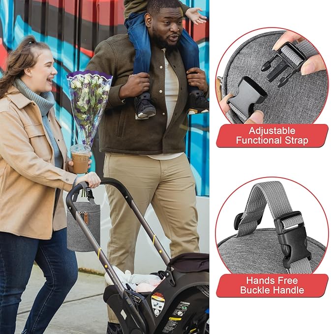 • DETACHABLE BUCKLE DESIGN: The detachable buckle is designed for hanging on a baby stroller or car seat. Fits for any stroller or pet Stroller. You can also attach it to diaper bag, back seat of car, or take it as a small tote bag.