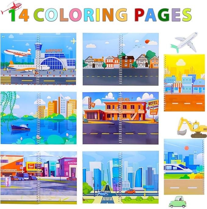 • Rich Content: Our OIBITUR sticker book contains 8 different styles of scenes. Your kids can stick 42 vehicles stickers on these scenes to complete different pictures. There are also two matching games, which will definitely enrich your child's leisure time!