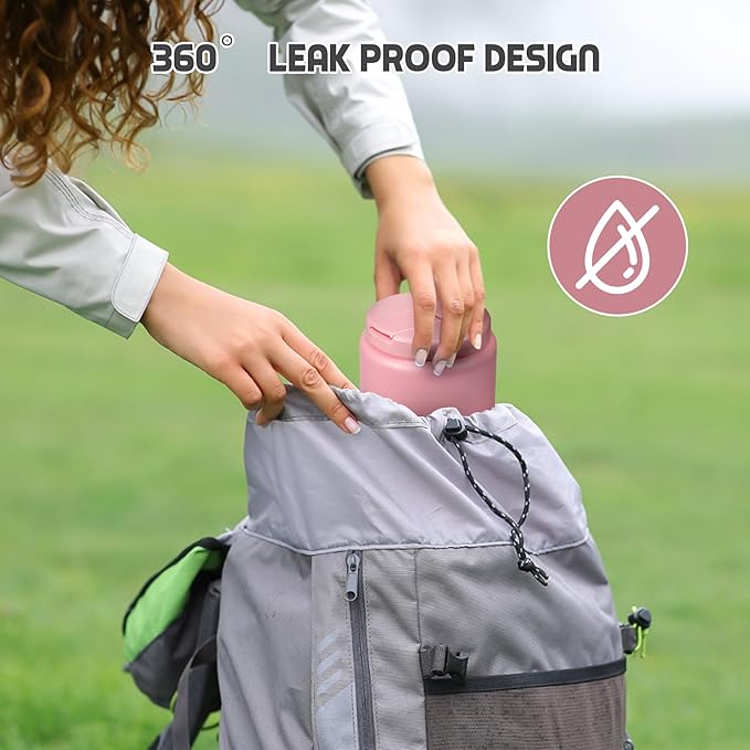 • 100% Leak Proof :Our food thermo comes with a thick silicone gasket. It is full sealed. So you can toss it in your bag or insulation bag without worrying about spills. Wide mouth design are also very easy to clean.