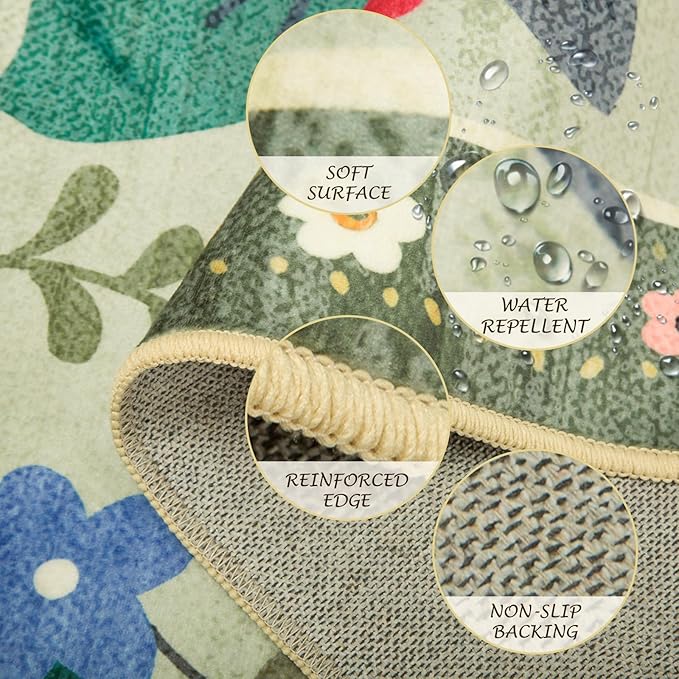 Floral 6ft Area Rug Machine Washable Soft Print Boho Carpet Non Slip Doormat Low Pile Flower Area Rugs for Living Room Bedroom Nursery Kitchen Dining Room Indoor-Light Green