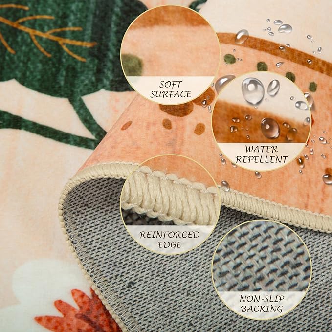 • Vintage Floral Design:This area rug combines floral,vintage,and boho elements,making it the perfect choice to complement any home decor.With its digitally printed design,the pattern and lines are gentle,while the colors are more vibrant.It can create a cozy and warm atmosphere in any room of your home