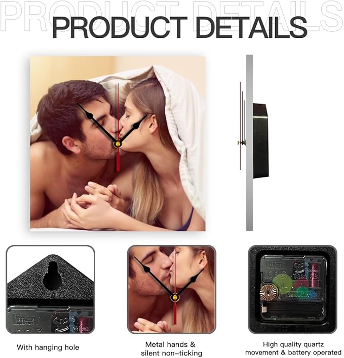 • 【Personalized pictures clocks】Please click the“customize now“button at upper,upload your customized photo and add text.Stretch photo to fill the entire printing area.Submit high definition images for better print results.