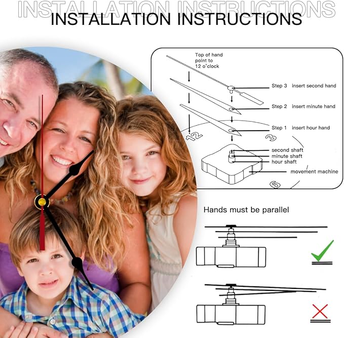 • 【Personalized pictures clocks】Please click the“customize now“button at upper,upload your customized photo and add text.Stretch photo to fill the entire printing area.Submit high definition images for better print results.