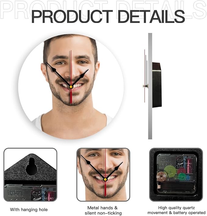 • 【Personalized pictures clocks】Please click the“customize now“button at upper,upload your customized photo and add text.Stretch photo to fill the entire printing area.Submit high definition images for better print results.