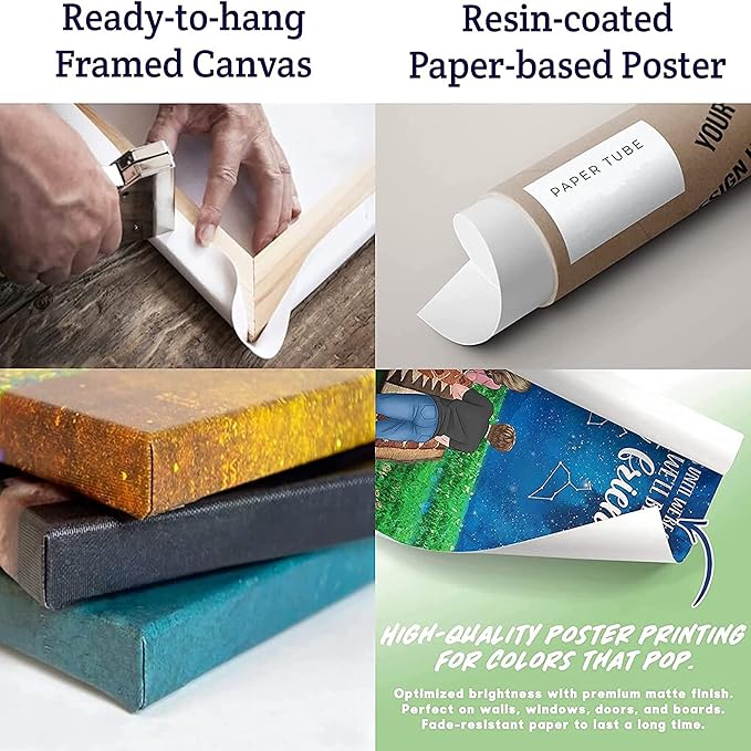 • CANVAS ( WITH FRAME): Abrasion-Resistant Surface That Easily Withstands The Print Production Process, Packaging, And Handling. Ready To Hang With Full Gallery Wrapping And Framing. Canvas Made Of 16 Mil, 310Gsm Material With A Fine Weave. Comprised Of 35% Cotton And 65% Polyester For Added Durability And A Satin Finish.