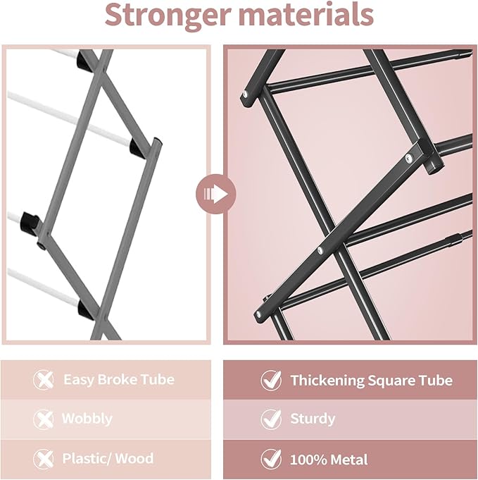 • Material: The APEXCHASER clothes drying rack is made of all metal and has a rust-resistant coating, which can endure different weathers for indoor and outdoor use, making it perfect for apartments or small living spaces.