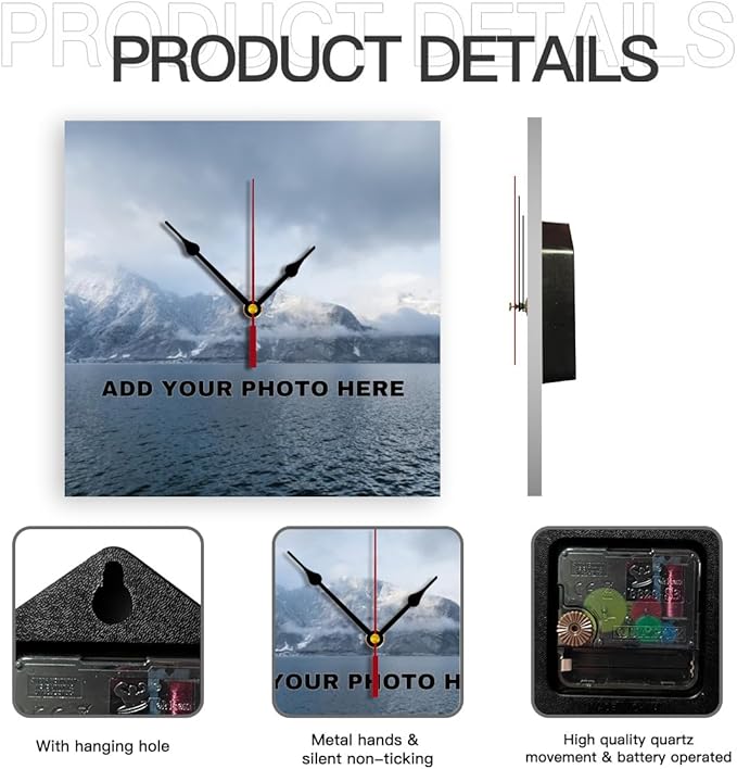 • ⏰⏰Personalized pictures clocks:Please click the“customize now“button at upper,upload your customized photo and add text.Stretch photo to fill the entire printing area.Submit high definition images for better print results.