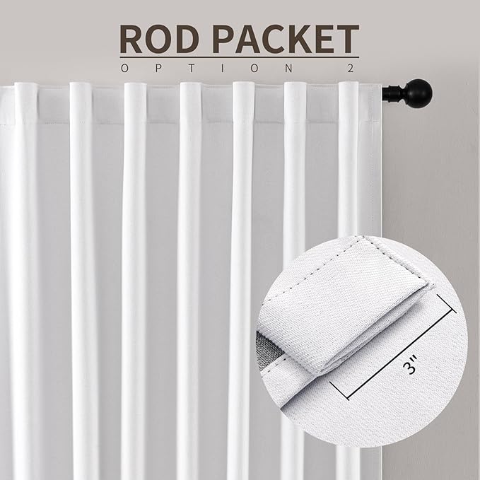• 【Back Tab & Rod Pocket Design】The Joydeco blackout curtain is available in both rod pocket and back tab, you can choose the convenient way to decorate your windows. Machine wash with cold water, tumble dry at low temperature. Be careful not to use the ironing machine to iron the back, otherwise it will damage the light blocking coating and affect the blackout effect.