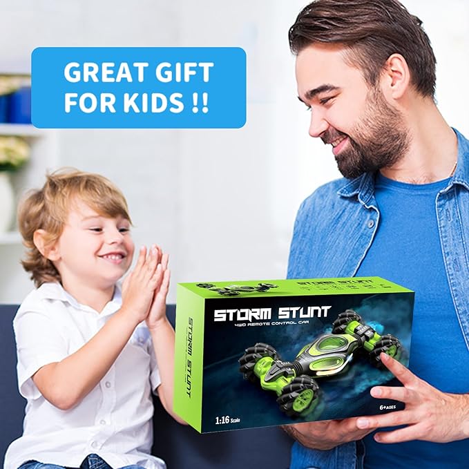 • All-Round Drift & Cool Stunt:4WD High-Tech gesture sensing rc stunt car can drive and drift in all directions, 360° rotation, 45° climbing, double-sided body flip, Double-sided Driving can easily pass obstacles,Cool functions and unlimited fun give children wonderful operation experience and visual effects.
