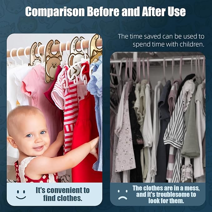 • 【Safe Material】 Crafted from high-quality materials, these baby closet dividers are designed with your child's well-being in mind. The baby hanger dividers used safe materials for daily use, giving parents peace of mind. This focus on safety ensures that these nursery organization provide a reliable organizational solution throughout your baby's early years.