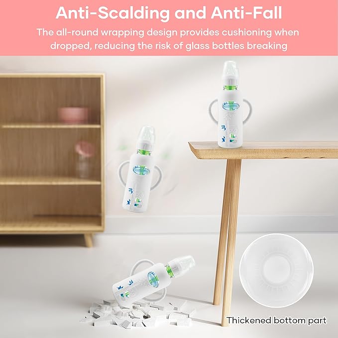• 【Excellent Protection】- Our bottle sleeves use a full-surface silicone wrap design. Even if accidentally dropped, it can protect the bottle from being scratched or even broken. This is a necessary maternal and child supplies for families who are used to using glass bottles, and there is no need to worry about the bottle always being damaged and broken.