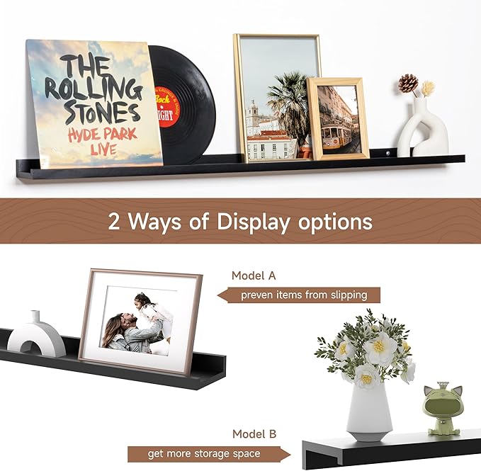 • MEMORIES SHOWCASE SHELF: Do you have a lot of memorable photos, but don't know how to display them, Fun Memories picture ledge shelves (especially in large sizes) are perfect for you to display them! With our hanging racks, you can store and display different types and sizes of photo frames in one place without worrying about