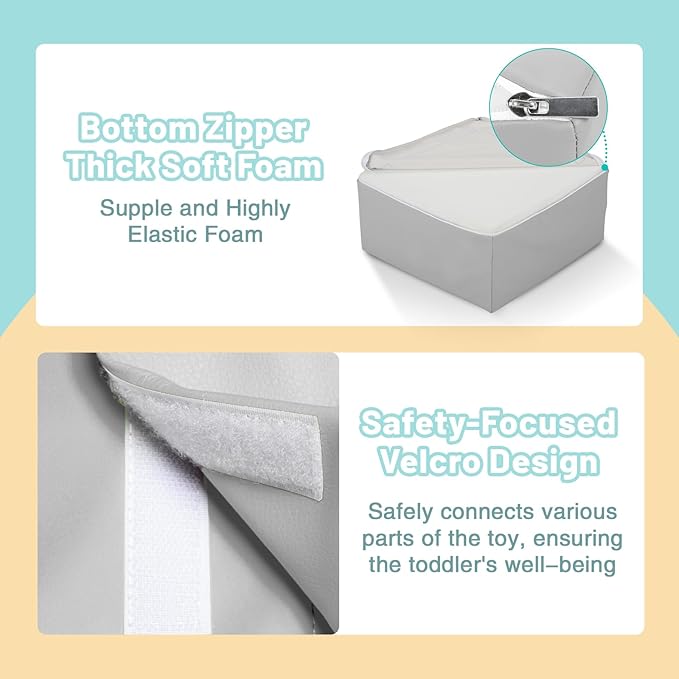 • 6-Piece Set: Baby climbing blocks consists of 2 grey stairs, 2 grey half-moons, 1 grey square and 1 grey slide. This soft play equipment stimulates your child's imagination to create endless combinations of structures, allowing them to enjoy the fun of the toy as they climb up and down, stacking and swapping four different shapes. Our climbing sets have a unique patented design that your child is sure to love