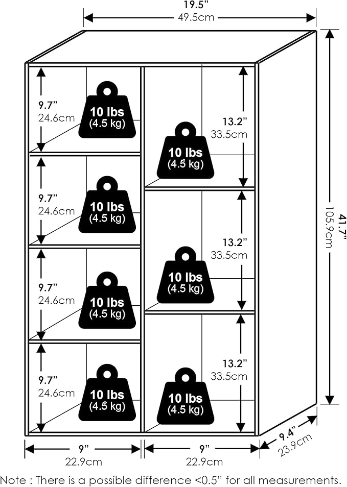 • Product Dimensions : 9.4"D x 19.5"W x 41.7"H