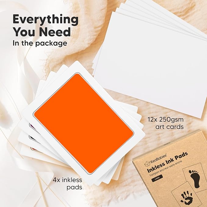 • 12 x 250GSM Art Cards - Your little one is perfect; so are their hand and footprint. Use the additional art cards to stamp multiple hand, foot or paw print. Choose the best artwork for your desired displays. Refer to our step-by-step instruction manual on how you can achieve the best results.