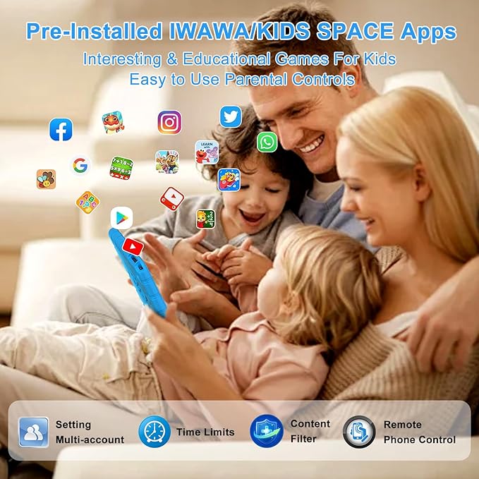 • 【Pre-Installed Parental Control & Educational Game】Z138 Kids Tablet is pre-installed with iwawa APP & Kids Space, which includes Montessori, Brain Training and other educational games for children over 2+ years old, so kids can learn and grow in a happy way,and age filtering ensures that kids of different ages only see filtered content. The easy-to-use Parental Control & Remote monitoring ensures always providing your kids a safe and clean online environment for having fun, no need to constant supervision. Anti-blue light, eye protection mode and blackout mode can reduced the screen flicker and the damage to the eyes caused by irritating blue light, maximize to protect children's vision.