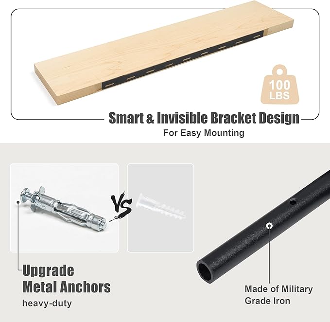 • EASY TO INSTALL: To ensure long-lasting durability, we recommend mounting the shelf onto a solid surface such as a stud, masonry (concrete/brick), or any robust surface. Hardwares are included, with our upgraded metal bracket, installation is quick and easy. All you need is a drill and a tape measure.