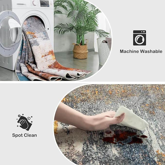• Machine Washable Area Rugs:Modern abstract print rugs can be machine washed, vacuumed, and cleaned with a broom or rag. Keep this easily washable carpet looking fresh daily with a vacuum cleaner or a swift wipe, and the innovative one-piece machine washable rug makes cleaning your home easier