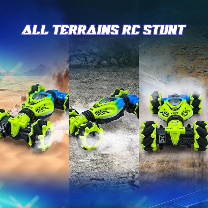 • 4WD Gesture Sensing Stunt Car:This rc stunt car can drive and drift in all directions, 360° rotation, 45° climbing, snaking, double-sided flip, twist into off-road and on-road modes.children to operate this off road stunt car via 3 senstive control modes easily. Loads of fun for your kids.
