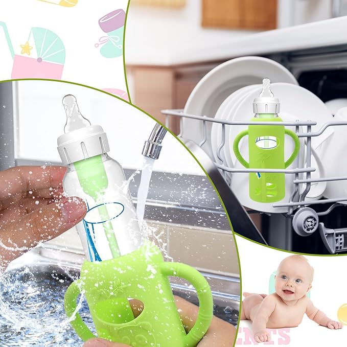 • Unique Designed for Baby Bottles - The silicone sleeves for Dr. Brown's Baby Bottles can against drop down,bumps and scratches. These are a must essential product for using glass baby bottles. They provide a more sturdy protection for glass baby bottle from breaking if dropped, which also unique handle design shape make it easier to grip and hold