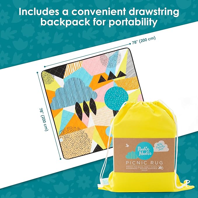 • Jumbo size for family fun: Measuring a generous 78” x 78” (200 x 200 cm), the picnic blanket offers ample space for the entire family to relax and enjoy. It's ideal for group picnics, beach days, or any outdoor activity needing a large, comfortable seating area.