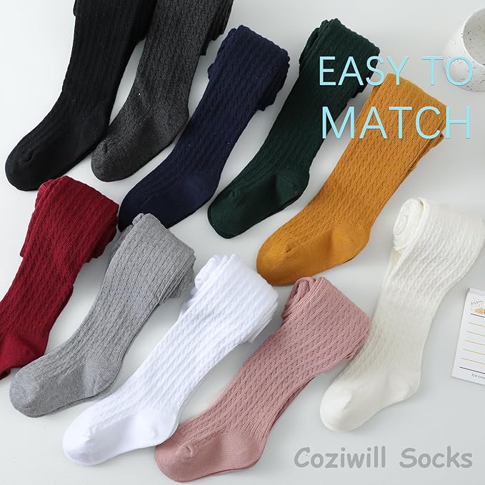 • MULTIPLE OCCASIONS: Available in 3 pack, suitable for dailywear and special occasions, such as birthday, Easter, Christmas, baptisms, holidays. Cable knit design and colorful tights easliy matches with different shoes and kids' outfits