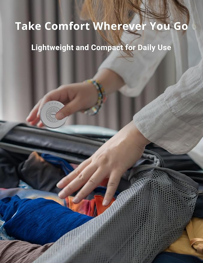 • Portable Sound Machine for Travel: Weighs only 2.88 oz; fits into pockets or bags; built-in fabric loop attaches to strollers, backpacks, or nightstands; compact design for bedrooms, nurseries, or travel sleep support