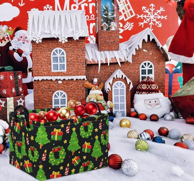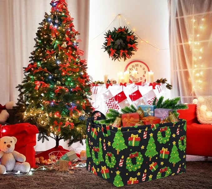 • MATERIAL:The christmas basket is made of durable canvas &The inner lining is made of waterproof fabric; sturdy metal rod frame around the top keep the basket shape.