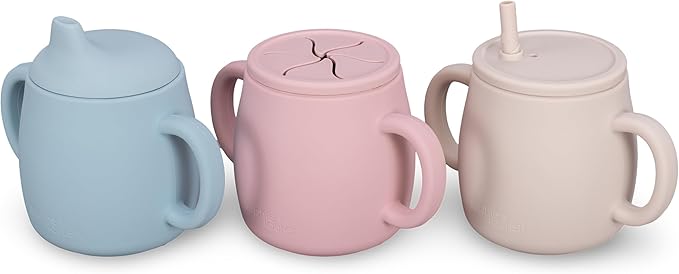 • 4 WAYS TO USE: Each lid offers a unique function, converting it from either sippy cup, straw cup, open cup or snack cup. The soft sippy spout and straw option promotes controlled sipping, helping them develop the coordination needed to drink independently. As your baby grows and becomes more confident, you can remove the lid to use the cup as an open drinking vessel. With the snack lid, you can transform the sippy cup into a handy container for dry snacks like crackers, cereal, or cut-up fruit. A mess-free way to keep snacks secure