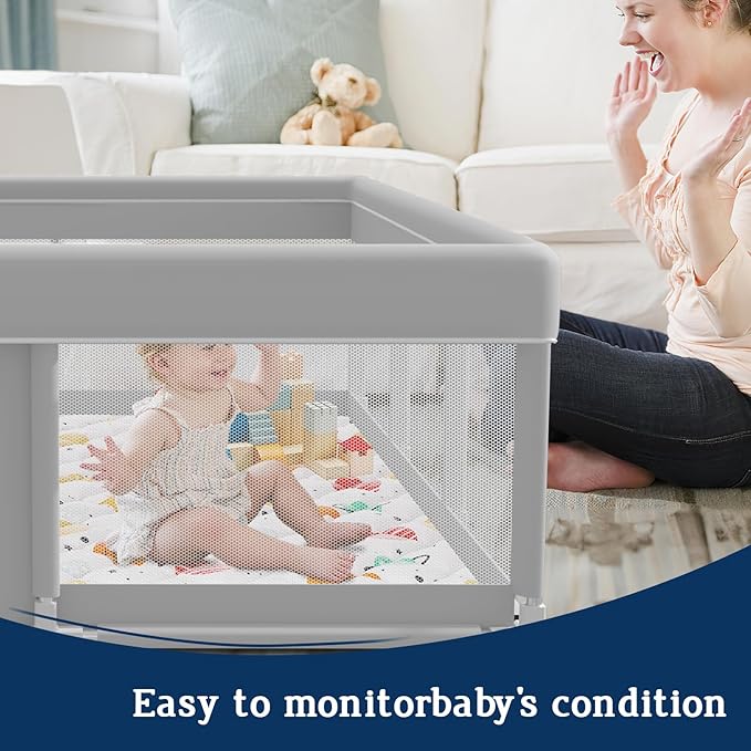 • 【FREE YOUR HANDS】With Jaobeem baby playpen with mat, It can help you limit your baby crawl and play in a safe area. Thus you can have a little spare time on relaxing, cooking, housework, or just free hands, while don't have to worry about them escaping and causing havoc.